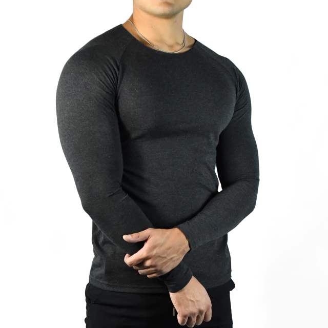 REMERA MANGA LARGA - GRIS OSCURO MELANGE