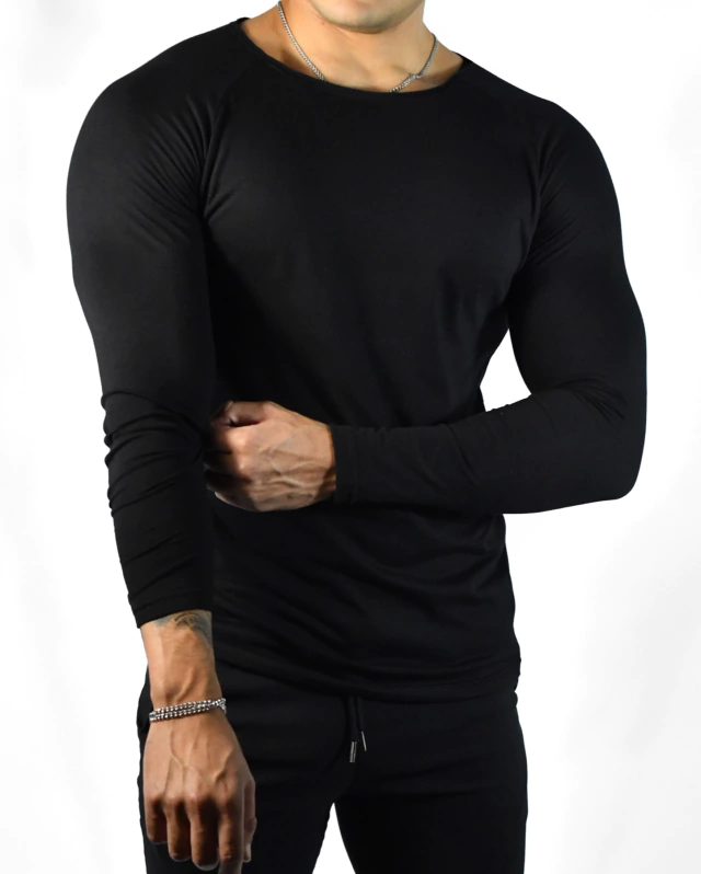 REMERA MANGA LARGA ELASTIZADA - NEGRO