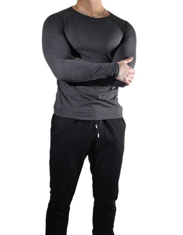 REMERA MANGA LARGA ELASTIZADA - GRIS MELANGE OSCURO